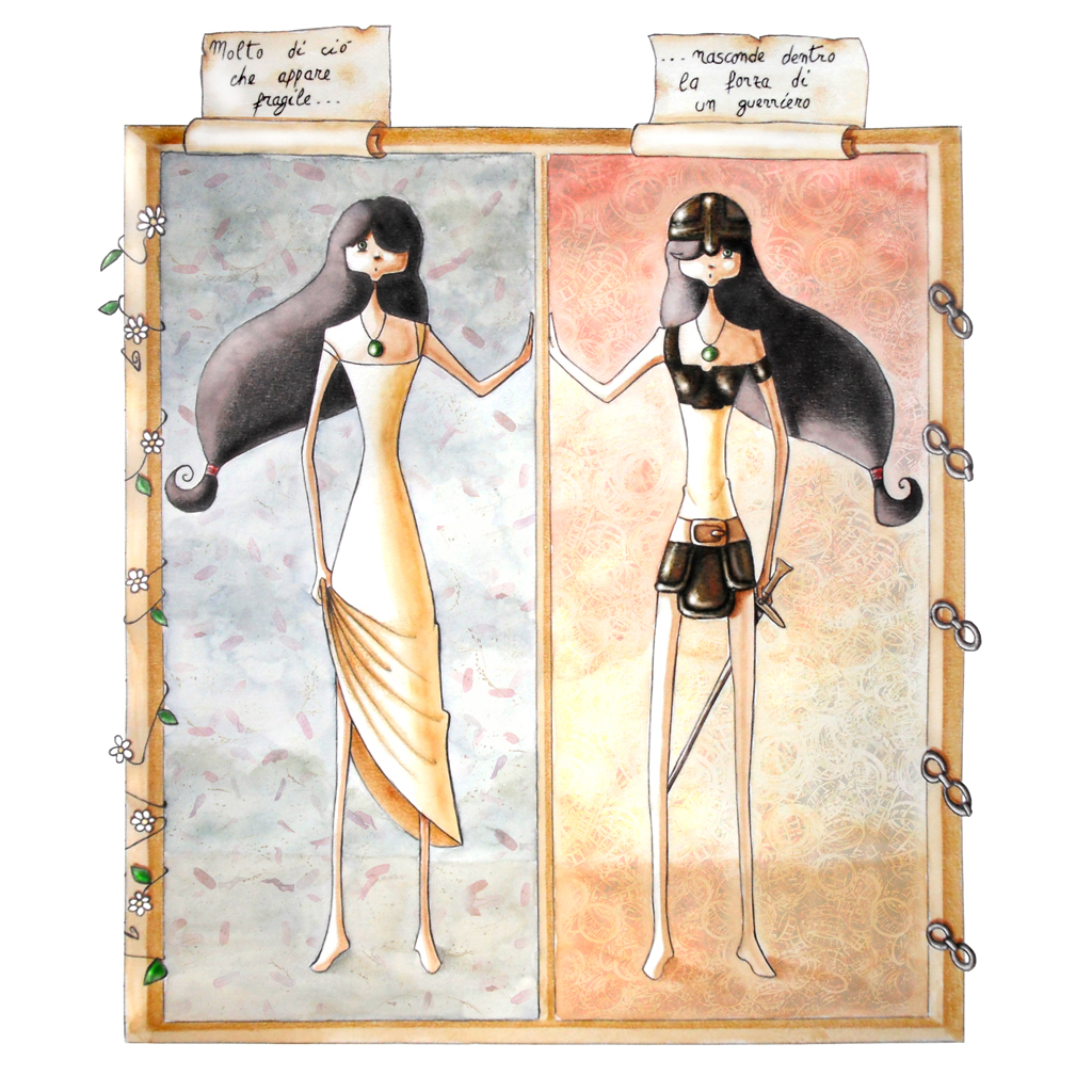 Così la donna, fragile creatura, che mostra fuori dolcezza e garbo. Ma porta dentro un animo forte, e come un guerriero dimostrerà coraggio!