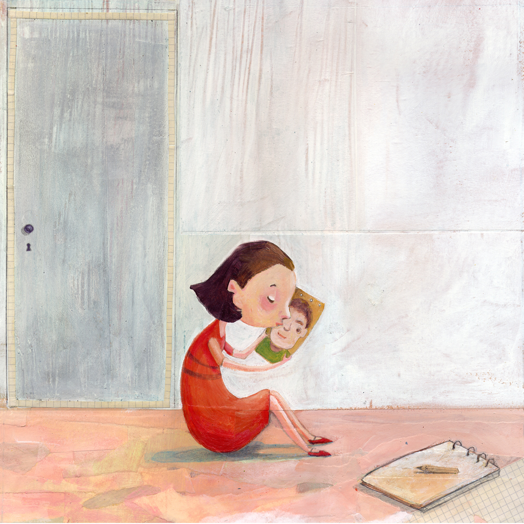 Nella tavola “Emozione Segreta”, una ragazzina si avvicina al ritratto della persona che ama per baciarlo. Questo è l’unico modo che ha per avvicinarsi al suo Amore, attraverso i disegni custoditi segretamente all’interno della sua stanza.