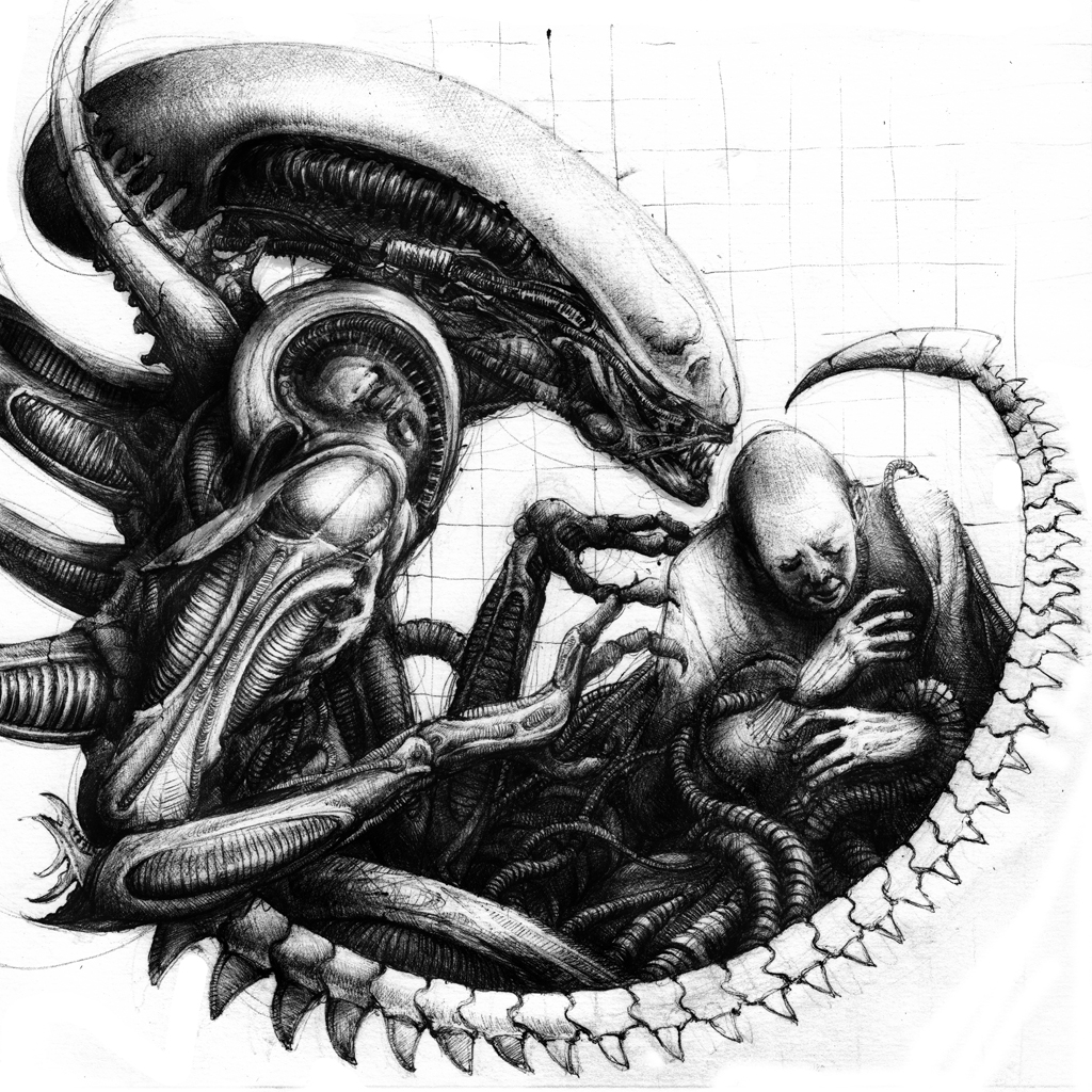Affascinata dall’arte e dallo stile di H. R. Giger ho scelto il terzo film della trilogia “Alien” di David Fincher. L’illustrazione raffigura il momento in cui avviene l’incontro ravvicinato tra la protagonista e lo xenomorfo.