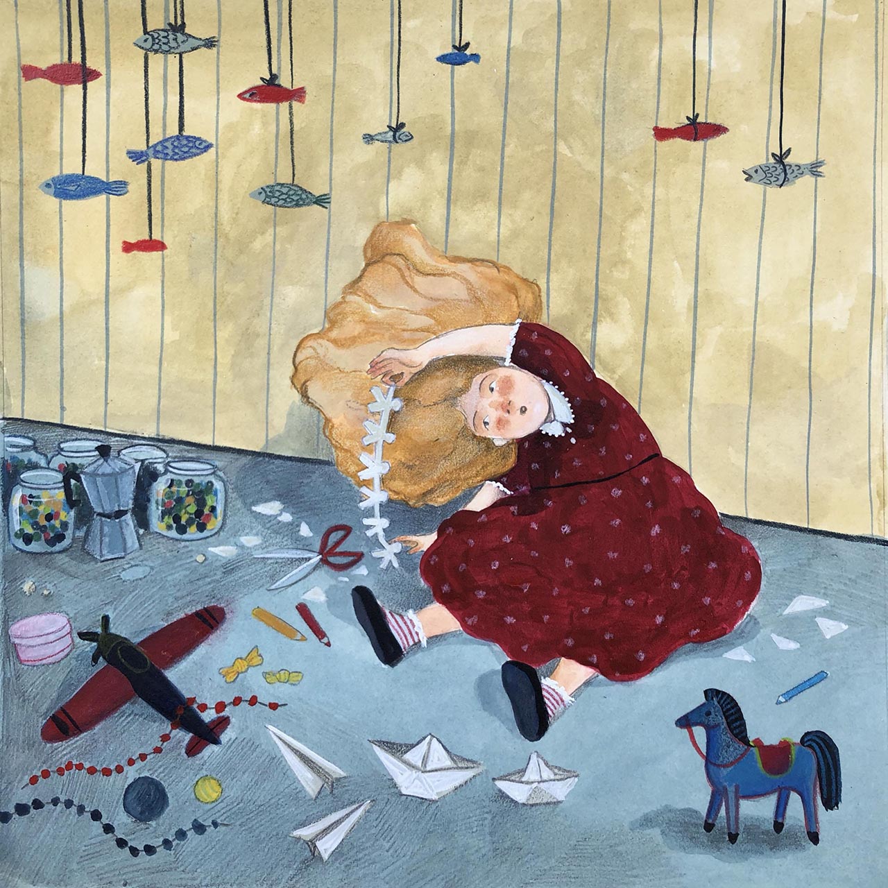 La vastità del mondo che un bambino ha fame di conoscere improvvisamente si restringe, si riduce allo spazio racchiuso tra le mura domestiche. E lì, nella sua stanza dei giochi, i più piccoli continuano con genuinità a fare ciò che hanno sempre fatto, con quella capacità di adattamento che soltanto i bambini hanno. Giocano, scoprono, sperimentano, imparano… per quanto la realtà fuori sia grigia e lo spazio ristretto, i loro occhi continuano a vedere piccole e grandi meraviglie.