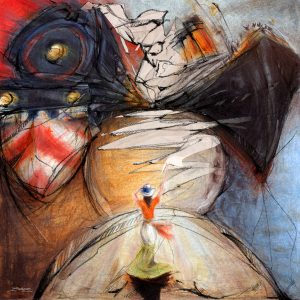 Complimenti all’artista che, tramite simboli e metafore, definisce il mondo attuale aprendoci alla possibilità  di un mondo nuovo. Forse migliore…