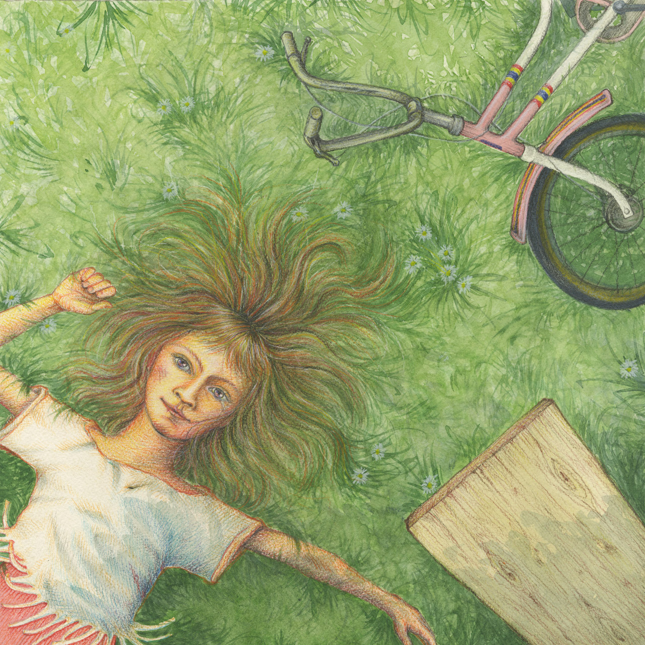 Una caduta con la mia bici quand’ero piccola, dopo alcune acrobazie, che male! Ho fatto un tonfo, come tante altre volte nella vita, ma in fin dei conti da qui la prospettiva non è poi così male.