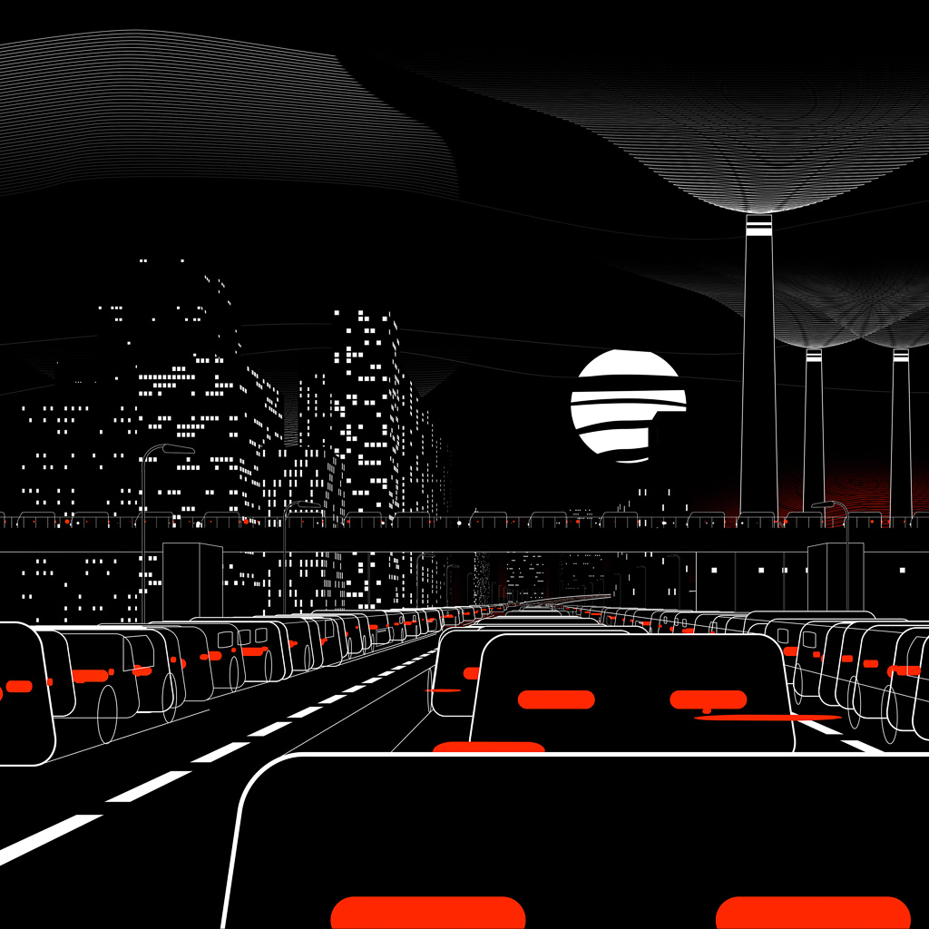 Luci rosse e bianche, in una distesa caotica e sovrapposta.
