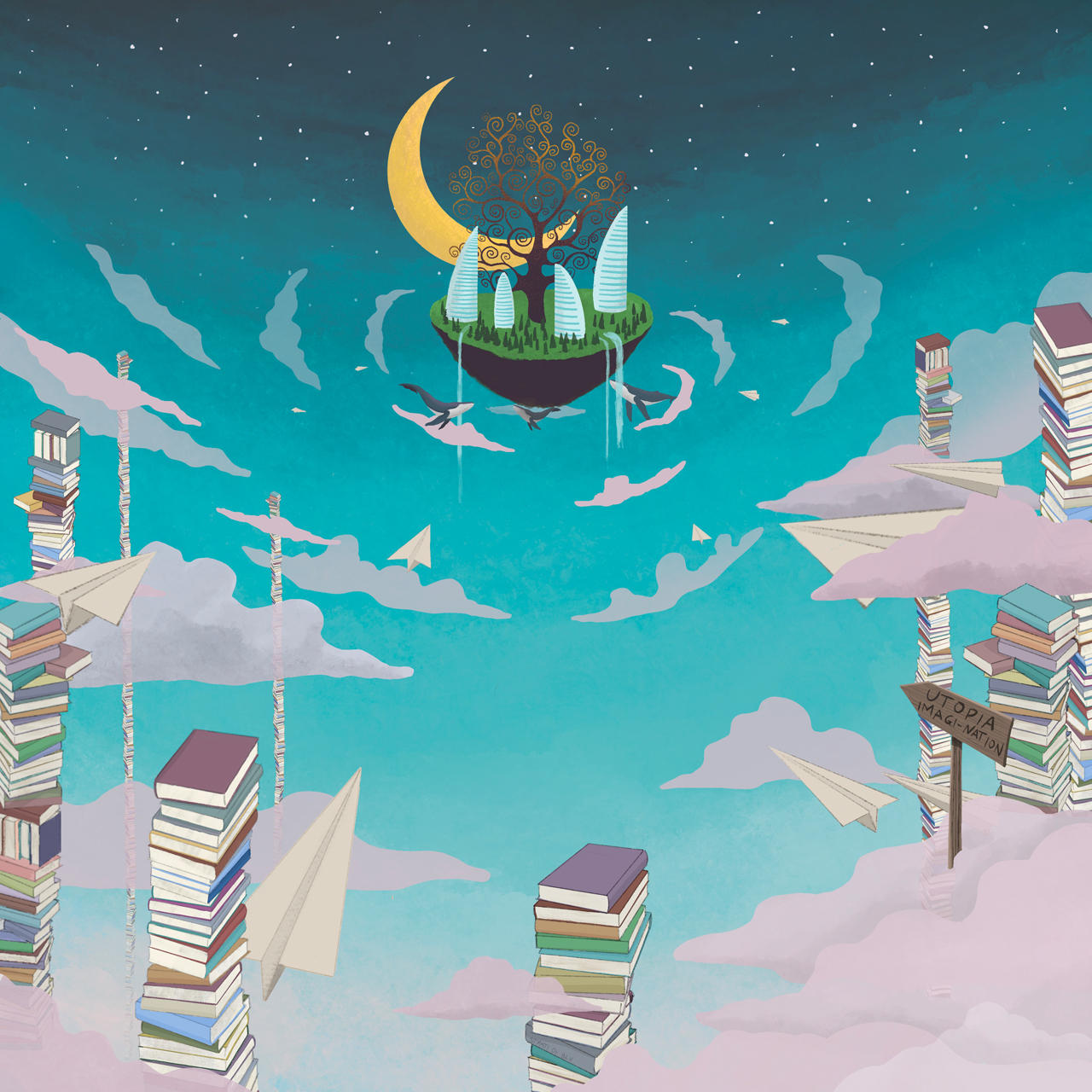 L’ utopia è un luogo che si avvicina alla perfezione e molto probabilmente nemmeno esiste. Io ho immaginato l’ utopia come l’isola che non c’è. Un luogo che fa parte di una nazione chiamata “Imagi – nation”. Se ti stai chiedendo come si può raggiungere questa isola la risposta è semplicemente: leggendo. Leggere e studiare ci aiuta a migliorarci, a comprendere gli errori del passato e a non rifarli, ci aiuta a prevenire i mali e a vivere vite che non vivremmo mai. Quindi se anche tu vuoi cavalcare una balena volante o visitare l’ albero della vita, non hai altra scelta che leggere. Costruisci tu stesso il tuo pilastro di libri e arriva in cielo. Lì quello che desideri ti aspetta.