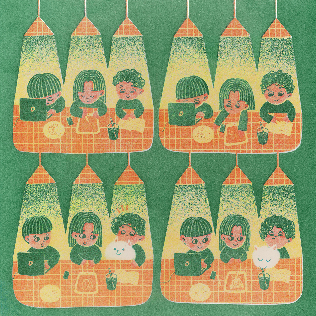 Once, I was drawing in a coffee shop, and my mind get stuck, a puppy popped out from under the…