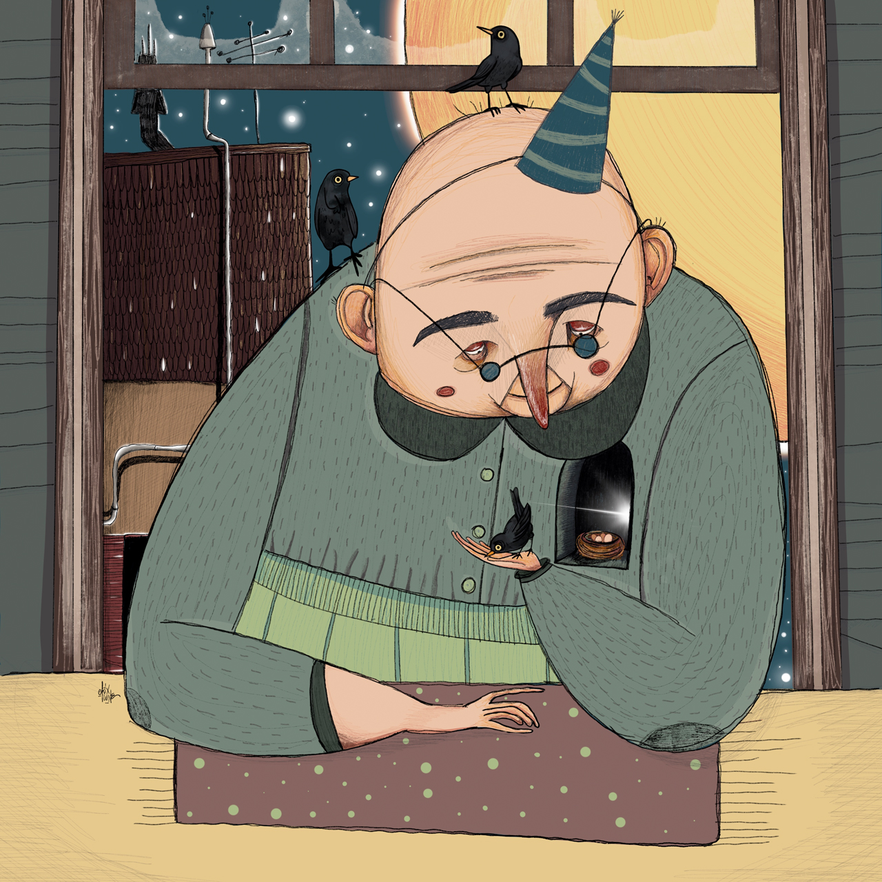 L’illustrazione racconta la storia di un uomo anziano che, con un gesto semplice e delicato, svela un mistero nascosto dentro…