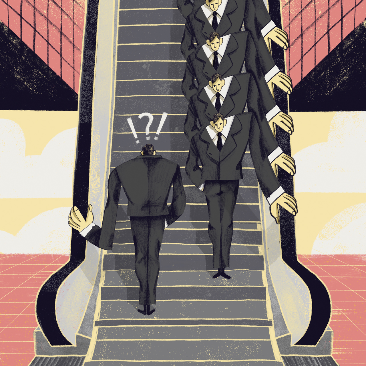 Quante scale! Quanta fretta! Sono in ritardo per la riunione! A questo pensa il personaggio della mia illustrazione, che sempre…