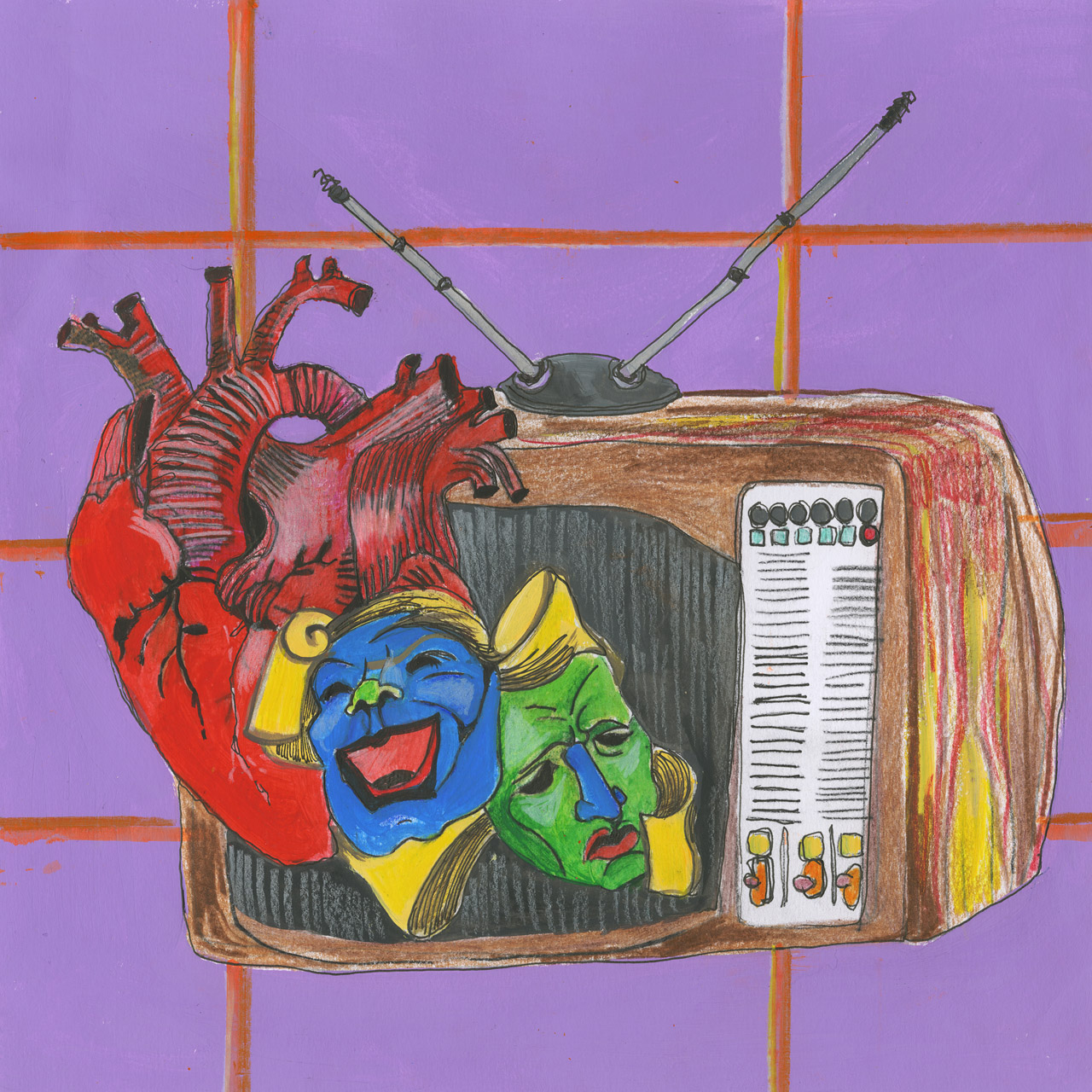 Un televisore domina la scena un cuore che pulsa vivo fragile ma luminoso. Ai lati due maschere teatrali. “Flop” racconta…