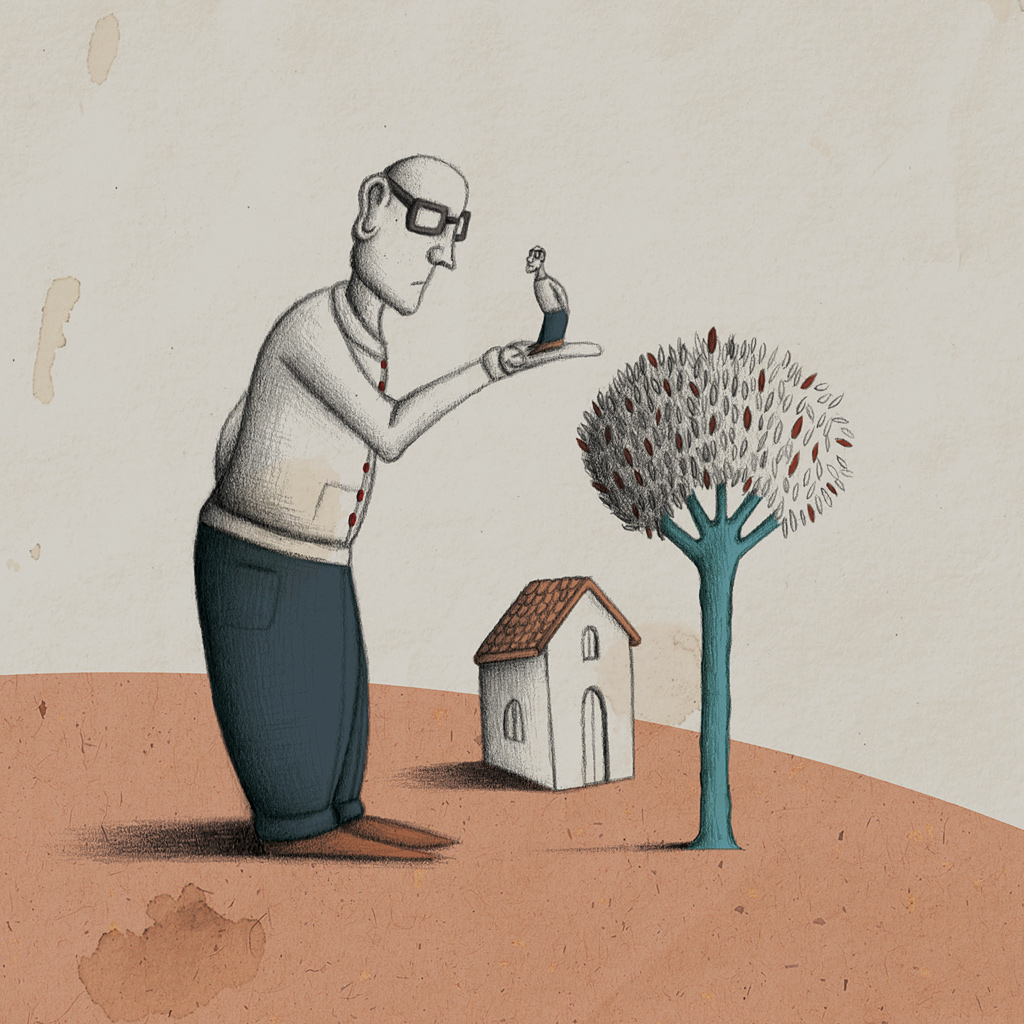 Ho interpretato il “ciao” in chiave onirica ed introspettiva, rivolta verso l’interno del proprio inconscio ed anima, uno sguardo dentro se stessi ed un saluto con la parte personale più segreta, nascosta, intima, quella più difficile da individuare, ma non del tutto invisibile. Da qui il gioco di contrapposizioni tra il se stesso “grande” e “piccolo”, la contrapposizione tra ciò che è visibile e ciò che non è visibile, e dunque il saluto tra queste due parti, componenti onnipresenti di, e imprescindibili per, ogni essere umano.