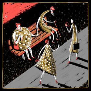 Il settimo sigillo, 1957, diretto da Ingmar Bergman. L’immagine presentata reinterpreta la scena dell’incontro tra il protagonista Antonius Block e la Morte, scena nella quale i due iniziano un’estremamente simbolica partita a scacchi che Block è destinato a perdere.