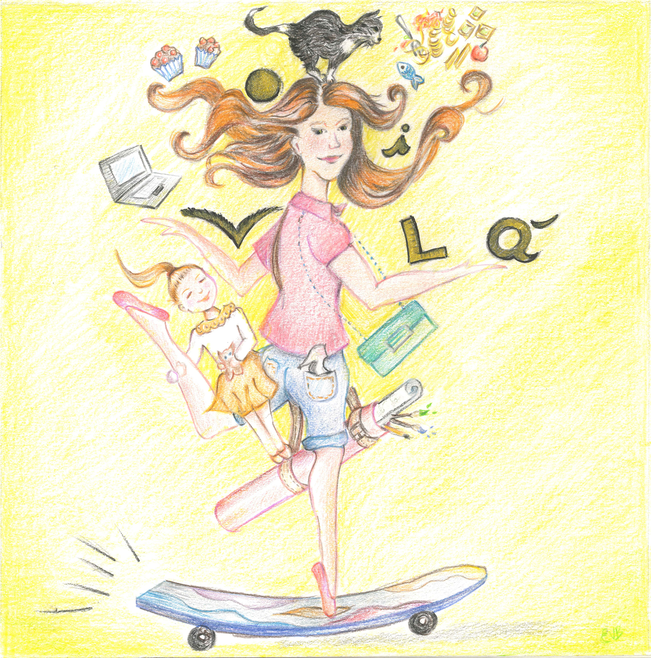 Ho chiesto a mia figlia che cosa le facesse venire in mente la parola “Voilà” e lei mi ha risposto: “Una magia! come il coniglio che con apparente naturalezza e leggiadria spunta fuori dal cappello del mago”. E allora, ho pensato, che cosa c’è di più semplice e mirabolante al tempo stesso di una donna al passo di skate al ritmo frenetico del nostro tempo, mamma, cuoca, manager, artista, ballerina, femme fatale, giocoliera, inseparabile dalla sua amata micia, perfetta nella sua imperfezione? Voilà signore e signori, questo miracolo potete incontrarlo ogni giorno!