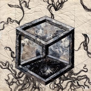 The lines in my work randomly go through space, meet and intersect, and create a…