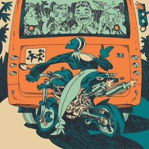La mia illustrazione rappresenta l’incontro atipico tra un bambino e un gigantesco mostro peloso. I due non si conoscono, ma…
